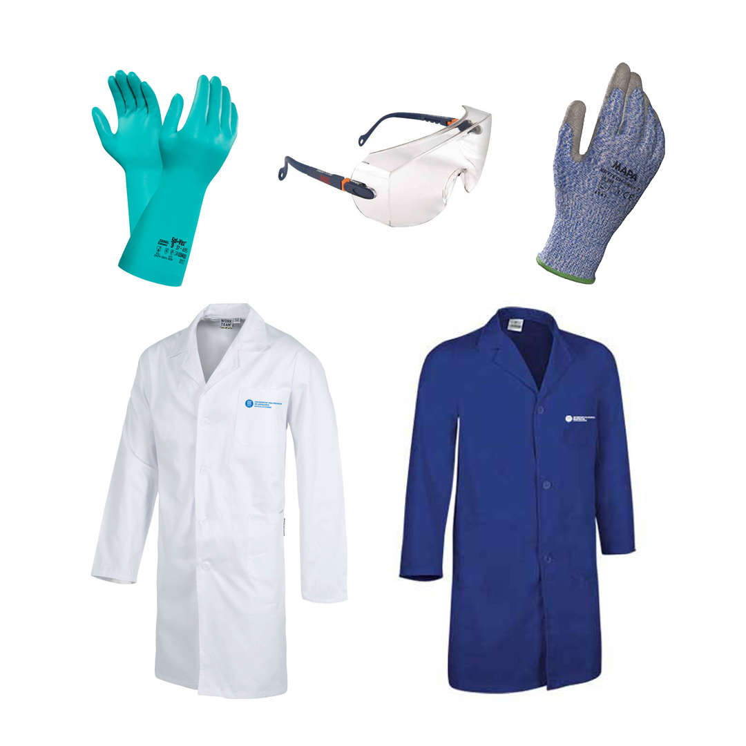 Kit Químico-Mecánico (bata BLANCA + AZUL + guantes QUÍMICOS + MECÁNICOS + gafas de protección)